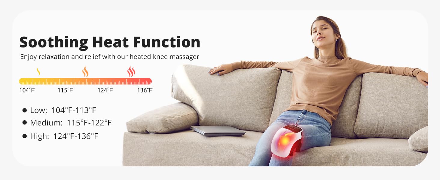 Combines 3 adjustable heating levels (gentle to deep-penetrating warmth) and 3 vibration modes to address diverse knee issuesβfrom post-workout soreness and daily stiffness to age-related discomfort. Tailor the therapy to your exact needs for personalized, spa-like relief at home.